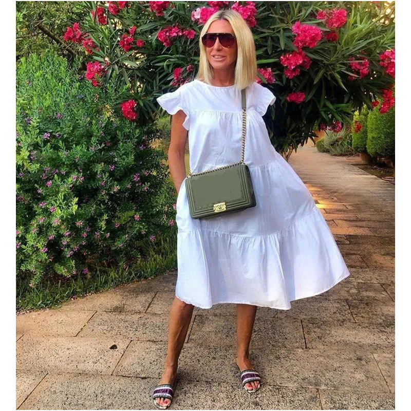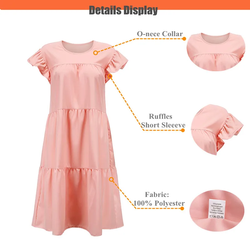 Summer Beach Big Swing Dress Women Short Sleeve Loose Dress Knee Length Ruffle Beach Casual Dress Plus Size